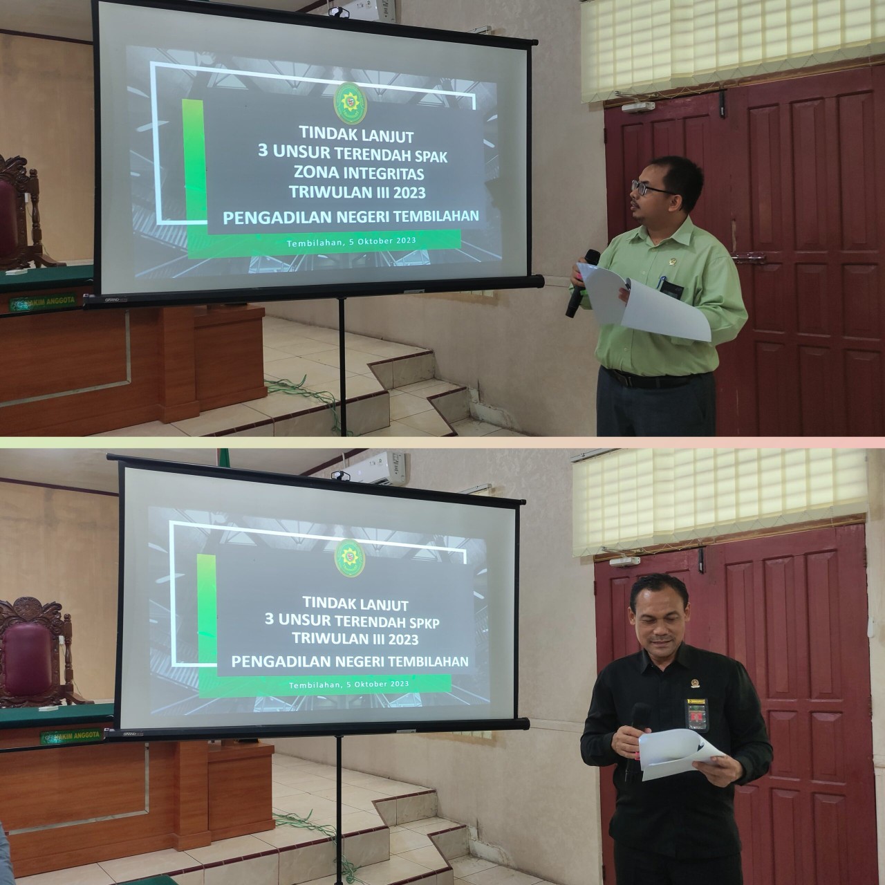 1.Tindaklanjut 3 untuk terendah Spak Zona integritas Triwulan III