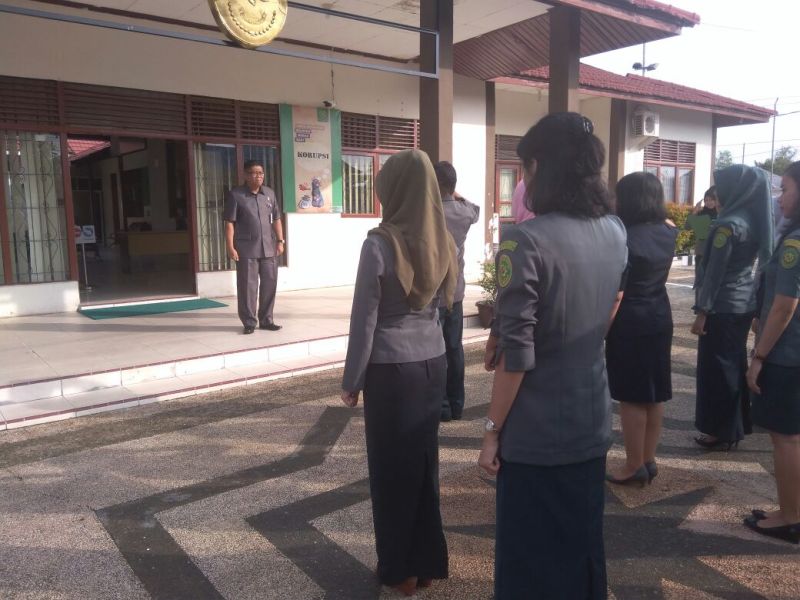 Tembilahan, Senin, 26 Februari 2018 Bertempat di Halaman Kantor Pengadilan Negeri Tembilahan diadakan Apel Senin Pagi yang dipimpin oleh Ketua Pengadilan Negeri Tembilahan Bpk Arie Satio Rantjoko, SH, MH dan diikuti oleh seluruh Hakim, Pejabat Fungsional, Pejabat Struktural, Para Staff dan Pegawai Honorer Serta Siswa Magang. Dalam Apel Senin Pagi ini, Bpk Arie Satio Rantjoko, SH, MH menyampaikan himbauan untuk melakukan persiapan akreditasi kantor Pengadilan Negeri. Selain itu, tuntutan kerapian dan kebersihan dalam bekerja juga menjadi materi pidato singkat dari Bpk Ketua Pengadilan Negeri Tembilahan ini.