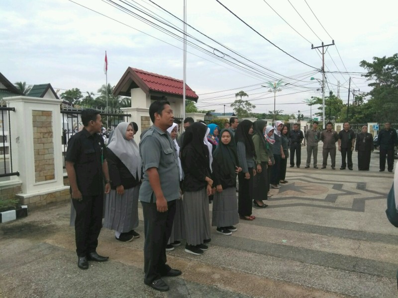 Tembilahan, Senin, 26 Maret 2018 Bertempat di Halaman Kantor Pengadilan Negeri Tembilahan diadakan Apel Senin Pagi yang dipimpin oleh Sekretaris Pengadilan Negeri Tembilahan Bpk Ade Junaedy, ST dan diikuti oleh seluruh Hakim, Pejabat Fungsional, Pejabat Struktural, Para Staff dan Pegawai Honorer Serta Siswa Magang. Dalam Apel Senin Pagi ini, Bpk Ade Junaedy, ST menyampaikan himbauan untuk melakukan persiapan akreditasi kantor Pengadilan Negeri seperti penyiapan dokumentasi, penyiapan putusan perkara hakim, pemenuhan peratlatan kebersihan, persiapan banner role model, dan masih banyak lagi. Selain itu, para Hakim, Pejabat Fungsional, Pejabat Struktural, Para Staff dan Pegawai Honorer Serta Siswa Magang diwajibkan meningkatkan kebersihan dan kerapian kantor serta memaksimalkan kualitas kerja agar nantinya bisa menyiapkan akreditasi kantor dengan lebih baik.
