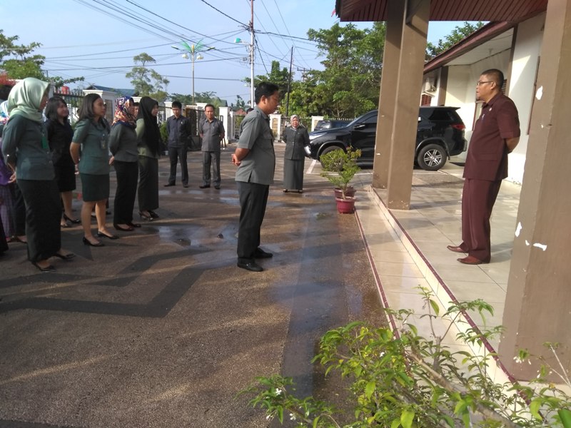 Tembilahan, Senin, 5 Februari 2018 Bertempat di Halaman Kantor Pengadilan Negeri Tembilahan diadakan Apel Senin Pagi yang dipimpin oleh Ketua Pengadilan Negeri Tembilahan Bpk Arie Satio Rantjoko, SH, MH dan diikuti oleh seluruh Hakim, Pejabat Fungsional, Pejabat Struktural, Para Staff dan Pegawai Honorer Serta Siswa Magang. Dalam Apel Senin Pagi ini, Bpk Arie Satio Rantjoko, SH, MH menyampaikan himbauan untuk melakukan persiapan akreditasi kantor Pengadilan Negeri. Selain itu, para Hakim, Pejabat Fungsional, Pejabat Struktural, Para Staff dan Pegawai Honorer Serta Siswa Magang diwajibkan meningkatkan kebersihan dan kerapian kantor serta memaksimalkan kualitas kerja agar lebih baik.