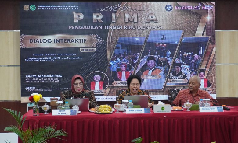 Pada hari Jum’at, 30 Januari 2026. Ketua Pengadilan Negeri Tembilahan, Bapak Feri Anda, S.H., M.H mengikuti secara langsung FGD pada acara Dialog Interaktif PRIMA yang diadakan oleh Pengadilan Tinggi Riau yang mengusung tema “Implementasi KUHP, KUHAP dan Penyesuaian Pidana bagi Aparatur Peradilan”.