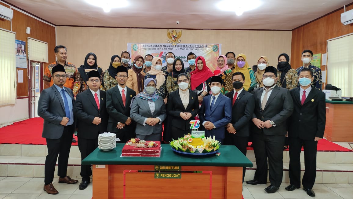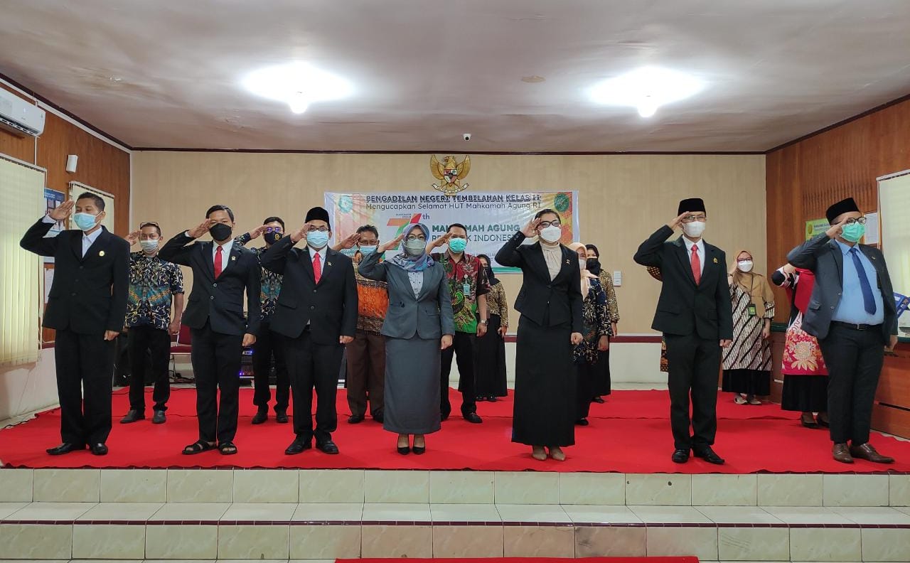 Kamis, 19 Agustus 2021, Keluarga Besar Pengadilan Negeri Tembilahan Kelas II Mengikuti Upacara dalam rangka Peringatan Hari Ulang Tahun Mahkamah Agung Republik Indonesia Yang Ke-76. Acara diikuti secara virtual oleh seluruh pegawai Pengadilan Negeri Tembilahan. Setelah rangkaian upacara peringatan HUT Mahkamah Agung, acara dilanjutkan dengan acara pemberian anugrah kepada pegawai Mahkamah Agung yang telah mengabdi di Mahkamah Agung. Dan terakhir, seluruh pegawai PN Tembilahan menonton bersama Film “Pesan Bermakna” persembahan oleh mahkamah agung republik indonesia.