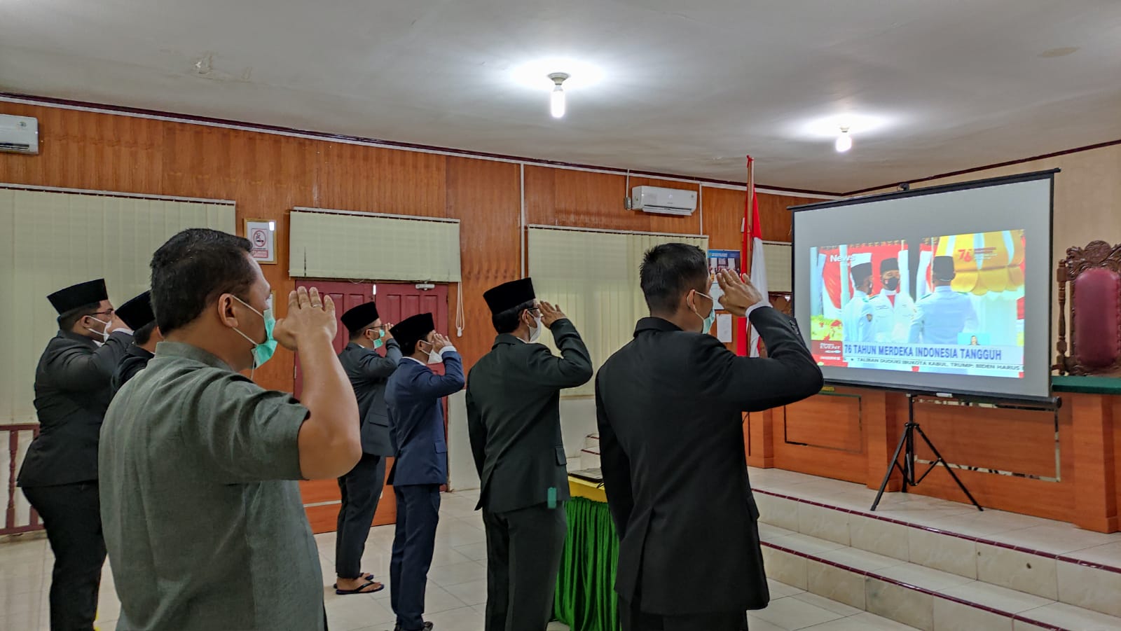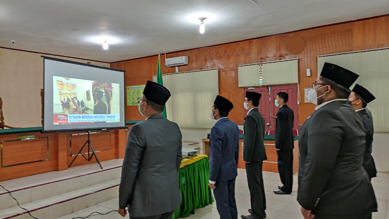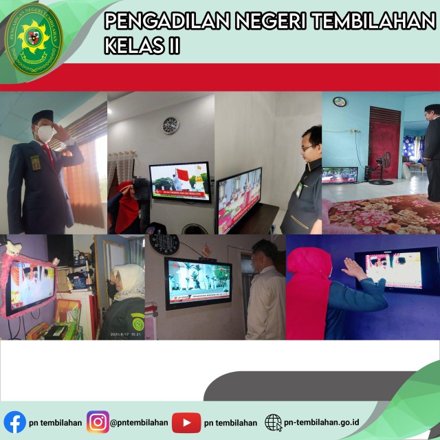 Selasa 17 Agustus 2021, Bertempat di Pengadilan Negeri Tembilahan. Pegawai Pengadilan Negeri Tembilahan mengikuti rangkaian upacara Hari Ulang Tahun Republik Indonesia Ke-76 yang dilaksanakan di Istana Merdeka Jakarta secara online melalui kanal youtube Kesekretariatan Negara Republik Indonesia. Acara ini dihadiri oleh Ketua Pengadilan Negeri Tembilahan Ibu Hera Polosia Destiny., S.H., M.H., Seluruh Hakim PN Tembilahan, panitera, sekretaris, pegawai serta ppnpn Pengadilan Negeri Tembilahan.