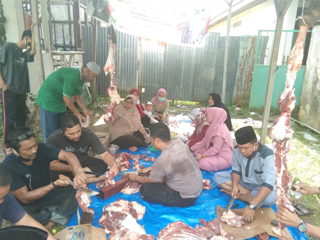 Tembilahan – (Jumat, 31 Juli 2020) Menyambut Hari Raya Idul Adha 1441 H Pengadilan Negeri Tembilahan Kelas II melakukan pemotongan hewan qurban 1 ekor Sapi. pemotongan hewan qurban dihadiri oleh ketua, Sekretaris, Para hakim dan pegawai serta Honorer yang tergabung dalam kepanitiaan Peringatan Hari Raya Idul Adha 1441 Hijriyah. Penyembelihan hewan qurban ini selain sebagai ibadah dan ketaqwaan kepada Allah SWT juga sebagai salah satu kegiatan Pengadilan Negeri Tembilahan untuk meningkatkan kebersamaan dan kekeluargaan di lingkungan Pengadilan Negeri Tembilahan. Hal ini terwujud dalam bentuk kebersamaan mulai dari menyembelih sampai dengan mendistribusikan hewan qurban kepada masyarakat. Kegiatan ini merupakan salah satu kegiatan rutin Pengadilan Negeri Tembilahan untuk membina kedekatan warga pengadilan dengan masyarakat.