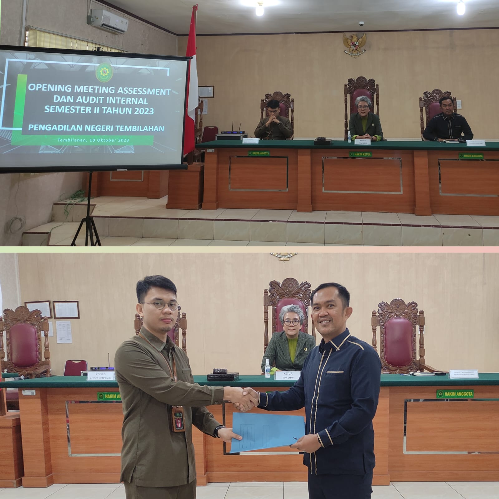 Bertempat di Ruang Sidang Kartika, Pengadilan Negeri Tembilahan mengadakan Opening Meeting Assesment Akreditasi Penjaminan Mutu Semester II Tahun 2023