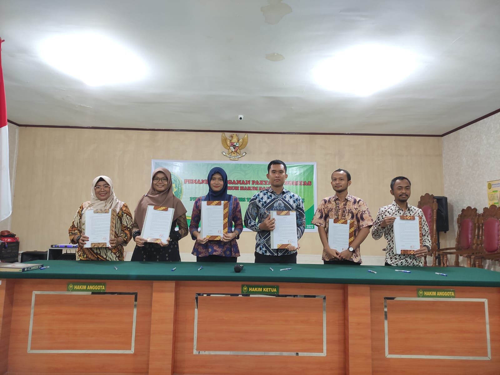 “Pakta Integritas adalah pernyataan atau janji kepada diri sendiri tentang komitmen melaksanakan seluruh tugas, fungsi, tanggung jawab, wewenang dan peran sesuai dengan peraturan perundang-undangan dan kesanggupan untuk tidak melakukan korupsi, kolusi, dan nepotisme. Pakta Integritas dituangkan ke dalam sebuah Dokumen Pakta Integritas. Penandatangan Pakta Integritas ini sesuai tujuannya adalah mensukseskan program Reformasi Birokrasi di lingkungan Mahkamah Agung Republik Indonesia dan badan peradilan dibawahnya serta merupakan wujud keseriusan seluruh elemen Pengadilan Negeri Tembilahan kelas II untuk mewujudkan pelayanan publik terbaik.