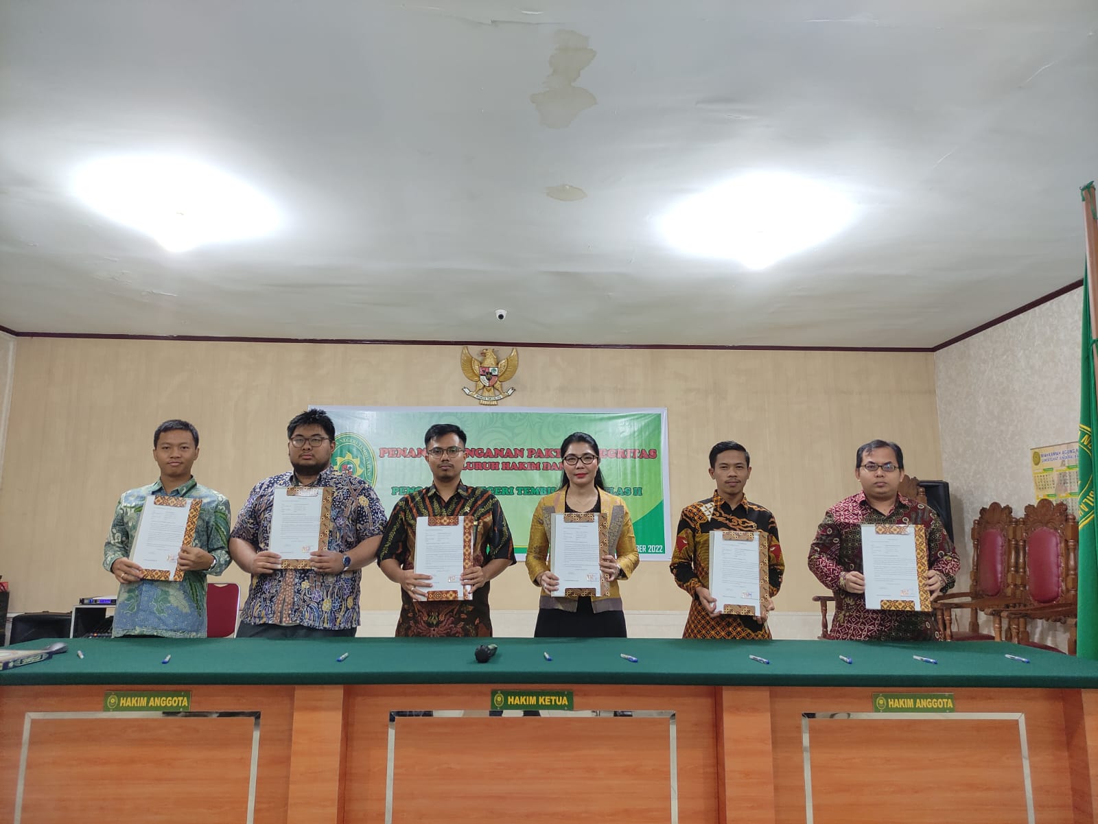Melaksanakan kembali Pembacaan dan Penandatanganan Pakta Integritas. Hal ini merupakan tindak lanjut dari SE SEKMA no 4 Tahun 2022 tentang Pembacaan dan Penandatanganan Pakta Integritas yang dipimpin oleh Ketua Pengadilan Negeri Tembilahan dan diikuti oleh para hakim, Panitera, Sekretaris, Panmud, Kasub, Pengadilan Negeri Tembilahan Kelas II