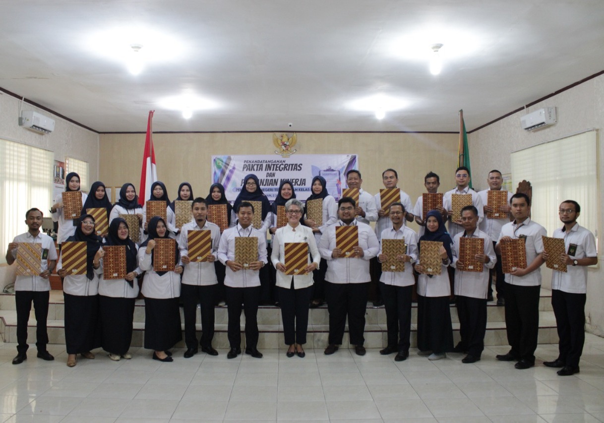 (Senin, 2 Januari 2023) Bertempat di Ruang Sidang Kartika, Pengadilan Negeri Tembilahan. Diadakan kegiatan penandatanganan Pakta Integritas dan Perjanjian Kinerja seluruh Hakim, Pegawa, dan PPNPN Tahun 2023 di Pengadilan Negeri Tembilahan. Kegiatan diawali dengan menyanyikan lagu Indonesia Raya dan Hymne Mahkamah Agung. Kemudian pembacaan Pakta Integritas yang diawali oleh pembacaan Pakta Integritas Ketua, Wakil Ketua dan Hakim yang di pandu oleh Ibu Ketua Pengadilan Negeri Tembilahan, kemudian bagian Kepaniteraan yang dipandu oleh Bapak Panitera, bagian Kesekretariatan yang dipandu oleh Bapak Sekretaris, PPNPN yang dipimpin oleh Bapak Syahruddin, sekaligus dengan penandatangan Pakta Integritas seluruh Hakim, Pegawai dan PPNPN dan Perjanjian Kinerja.