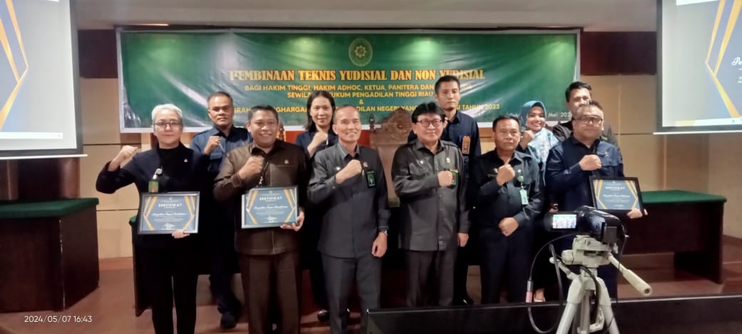 Bertempat Di Pengadilan Tinggi Riau. Ketua, Panitera dan Sekretaris Pengadilan Negeri Tembilahan menerima penghargaan dalam acara Pembinaan Bidang Yudisial & Non Yudisial serta Bimbingan Teknis dan Sosialisasi AMPUH Sewilayah Hukum Pengadilan Tinggi Riau. Penghargaan yang diterima antara lain adalah :