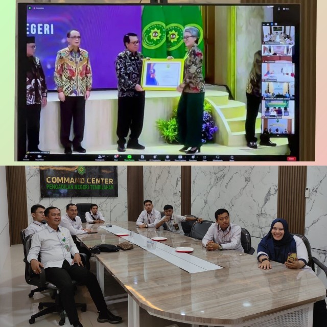 Bertempat di Pendopo Wahyawibawagraha Bupati Jember, Kota Jember. Ketua Pengadilan Negeri Tembilahan Ibu Aurora Quitina, S.H., M.H. Menghadiri secara langsung acara Penyerahan Pengahargaan Peningkatan Kinerja Peradilan Umum. Dalam acara tersebut, Pengadilan Negeri Tembilahan meraih Penghargaan Lomba Administrasi Perkara dan Keuangan Perkara Tahun 2023. Selain itu, bertempat diruang Command Center Pengadilan Negeri Tembilahan, Keluarga Besar PN Tembilahan juga mengahadiri secara daring.