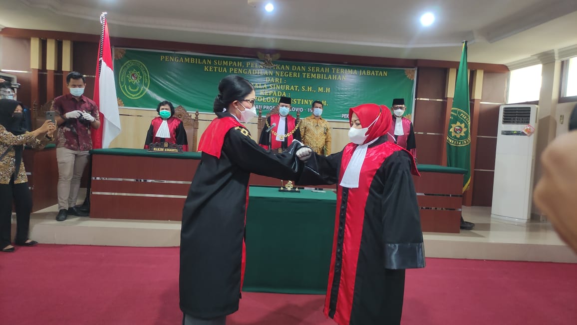 Pekanbaru, 25 Juni 2021. Bertempat di Ruang Sidang Cakra Lantai I Pengadilan Tinggi Pekanbaru diadakan acara Pengambilan Sumpah Jabatan, Pelantikan dan Serah Terima Jabatan Ketua Pengadilan Negeri Tembilahan Klas II dari Ibu Nurmala Sinurat, S.H., M.H. kepada Ibu Hera Polosia Destiny, S.H. dengan menerapkan protokol kesehatan pencegahan penyebaran Covid-19.