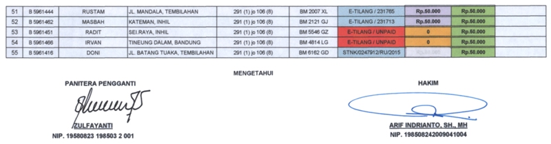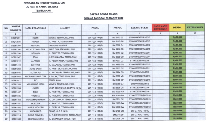 Pengumuman Daftar Denda Tilang Sidang Tanggal 03 Maret 2017