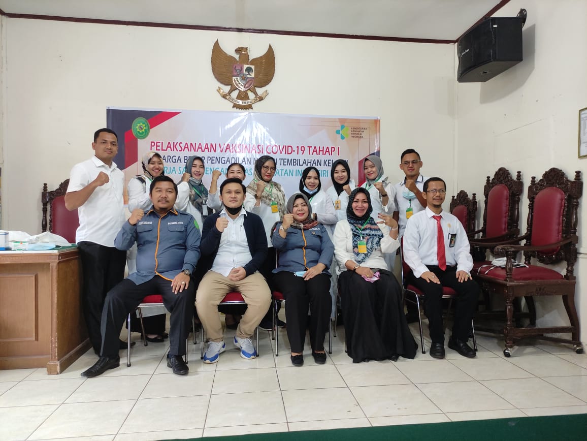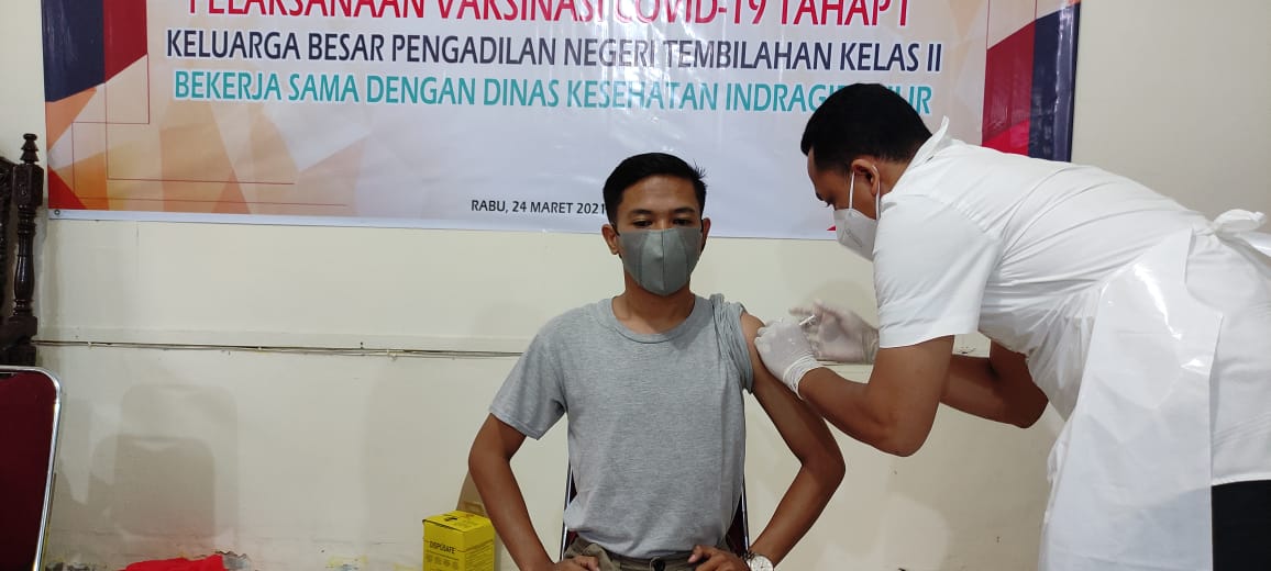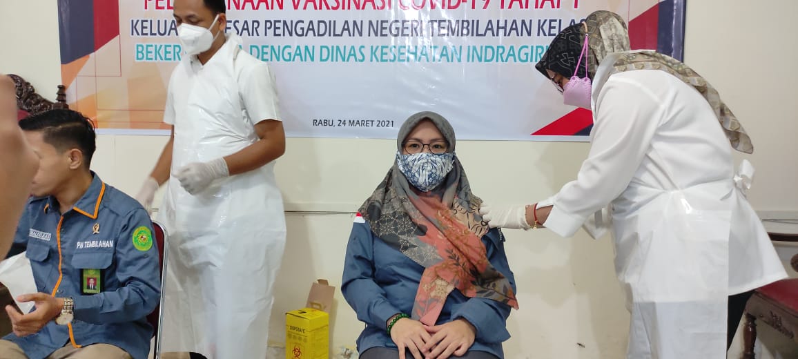 Rabu, 24 Maret 2021 Dilaksanakan kegiatan vaksinasi Covid-19 di lingkungan Pengadilan Negeri Tembilahan yang bekerja sama dengan Dinas Kesehatan Kabupaten Indragiri Hilir. Kegiatan vaksinasi diikuti oleh Hakim, Kepaniteraan, Pegawai PN, dan Pegawai Honorer yang diawasi oleh Ketua Pengadilan Negeri Tembilahan. Kegiatan vaksinasi dilaksanakan dengan tertib dan lancar tanpa adanya kendala.
