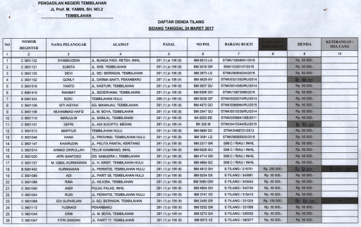 Pengumuman Daftar Denda Tilang Sidang Tanggal 24 Maret 2017