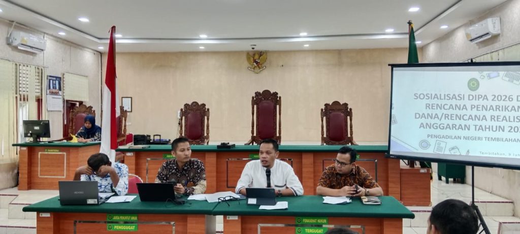 Pada hari Jum’at, 9 Januari 2026. Pengadilan Negeri Tembilahan melaksanakan Rapat dan Sosialisasi Awal Tahun. Diantaranya adalah : 1. Sosialisasi DIPA 2026 dan RPD/RRA Tahun 2026 2. Penyampaian Laporan dan Monev Capaian Kinerja Tahun 2025