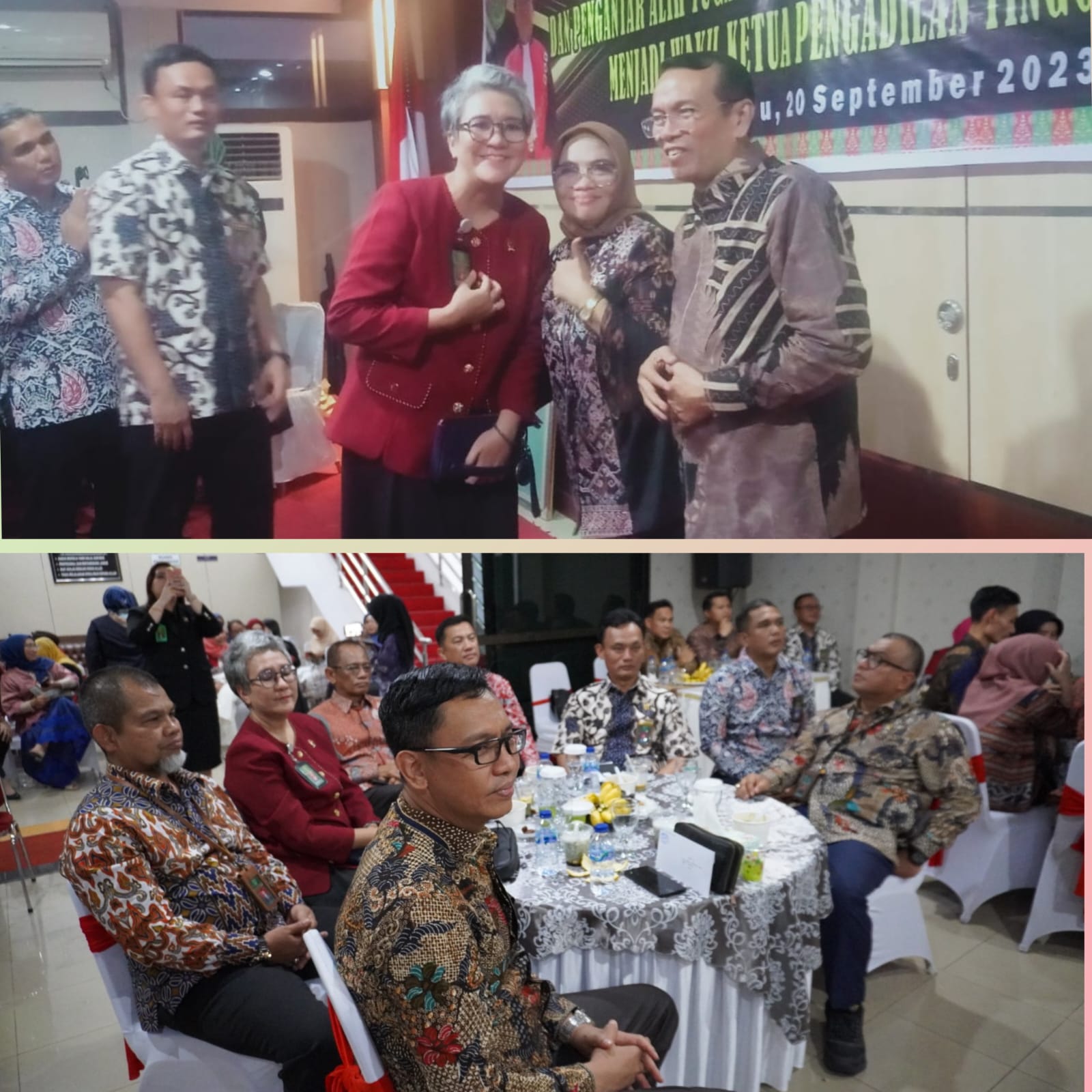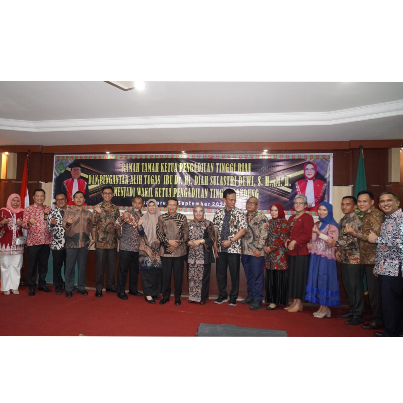 Setelah acara tersebut, dilaksanakan juga Ramah Tamah Ketua Pengadilan Tinggi Riau yang baru saja dilantik pada tanggal 12 September 2023 lalu dan juga acara Alih Tugas Wakil Ketua Pengadilan Tinggi Riau Ibu Dr. Diah Sulastri Dewi, S.H., M.H. yang akan mutasi sebagai Wakil Ketua Pengadilan Tinggi Bandung.