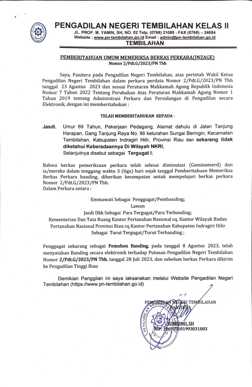 RELAAS PEMANGGILAN KEPADA TERGUGAT