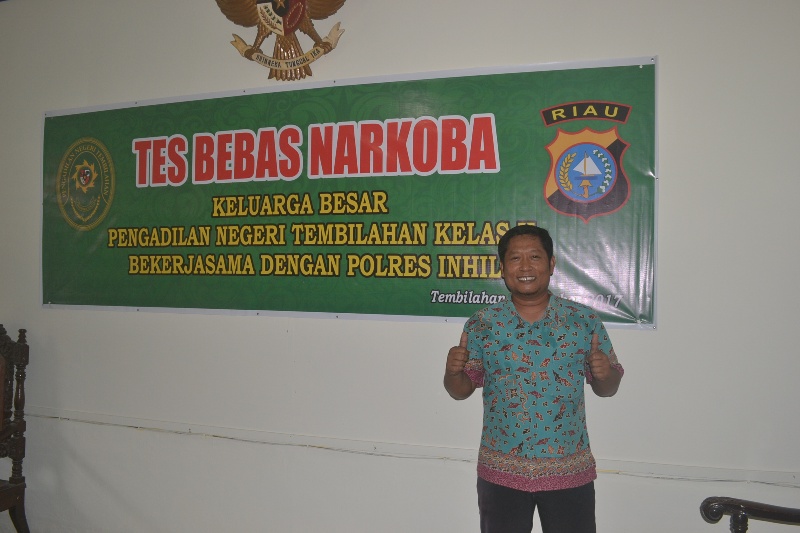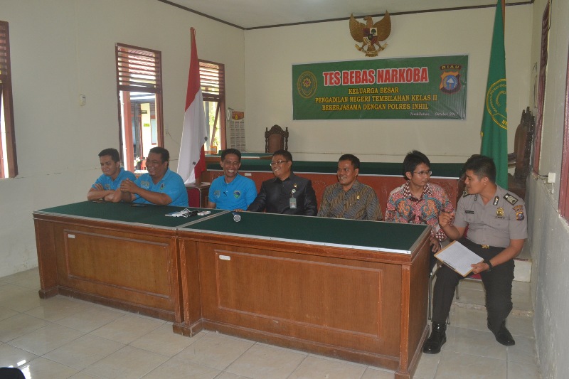 Pada Hari Kamis tanggal 26 Oktober 2017, Bertempat di ruang Sidang Cakra Pengadilan Negeri Tembilahan, dilaksanakan Pemeriksaan Narkoba Melalui Tes Urine oleh BNN (Badan Narkotika Nasional) Polres Indragiri Hilir yang di ikuti oleh seluruh Pegawai Pengadilan Negeri Tembilahan yaitu : Ketua, Para Hakim, Panitera, Sekretaris, Pejabat Fungsional, Pejabat Struktural, Panitera Pengganti, Juru Sita Pengganti serta Staf pegawai Pengadilan Negeri Tembilahan serta para Honorer.