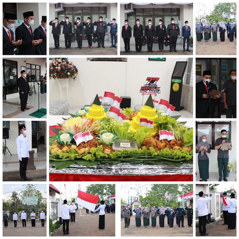 (Tembilahan, 17 Agustus 2022) Pengadilan Negeri Tembilahan dalam rangka memperingati hari Kemerdekaan Negeri Republik Indonesia yang ke 77 keluarga besar Pengadilan Negeri Tembilahan melaksanakan Upacara Bendera Kemerdakaan Negeri Tepublik Indonesia di halaman kantor Pengadilan Negeri Tembilahan. Upacara dihadiri oleh seluruh Hakim, Pegawai, dan PPNPN. Pembina upacaraย Bendera Kemerdakaan Negeri Tepublik Indonesia adalah bapak Janner Christiadi Sinaga, S.H.