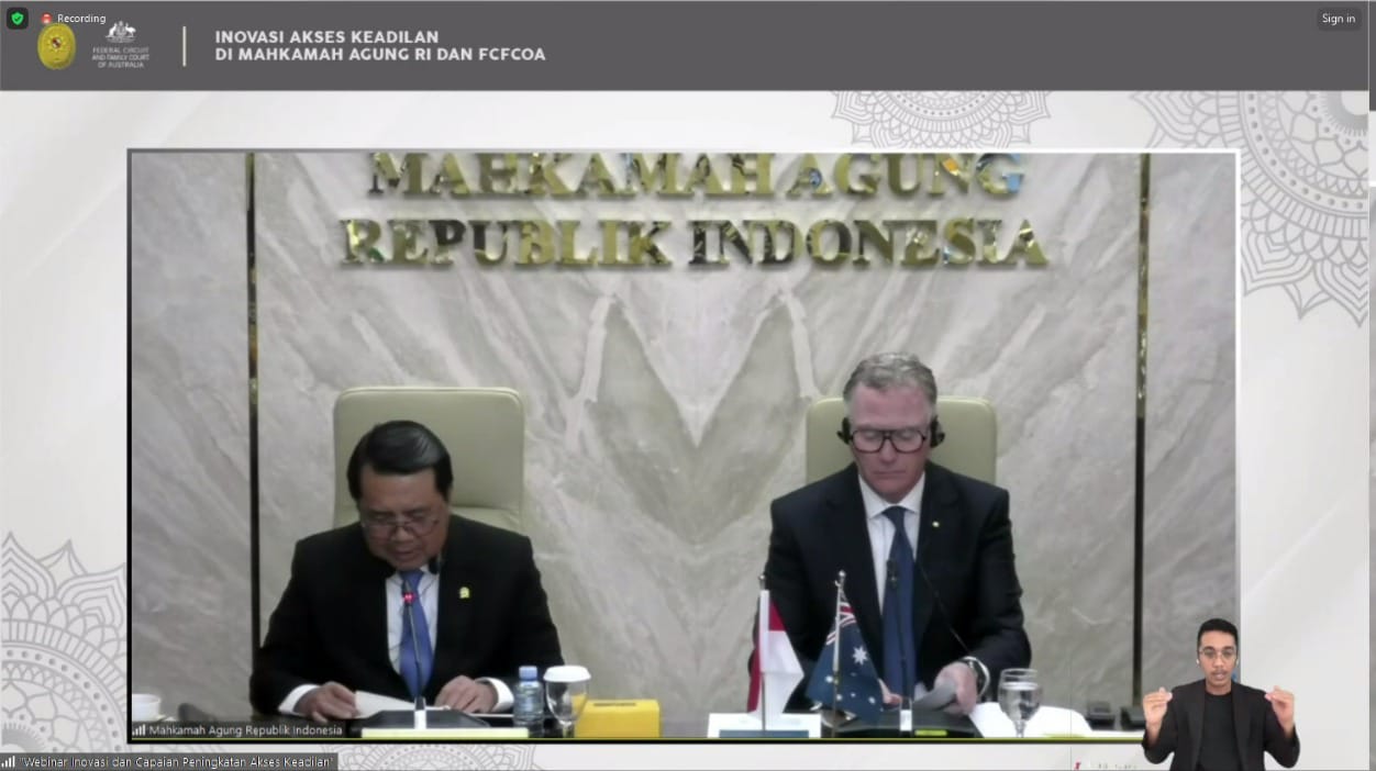 Pengadilan Negeri Tembilahan mengikuti acara webinar secara daring dengan tema “Capaian Kerjasama Mahkamah Agung Republik Indonesia dan FCFCOA dalam kerjasama akses keadilan”.
